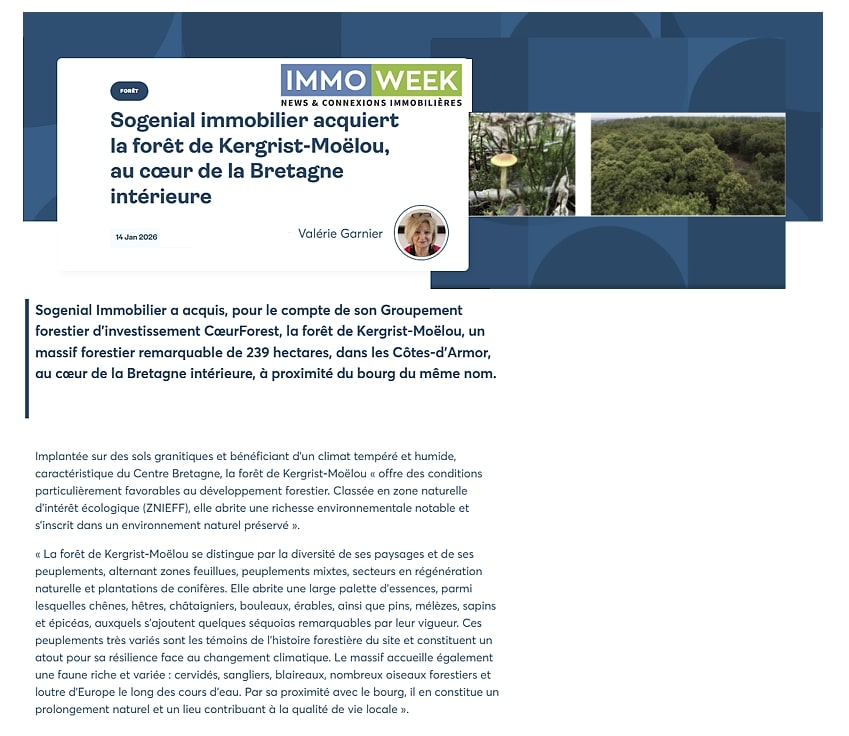 IMMOWEEK : Nouvelle acquisition verte pour le GFI CoeurForest 2. Valérie Garnier