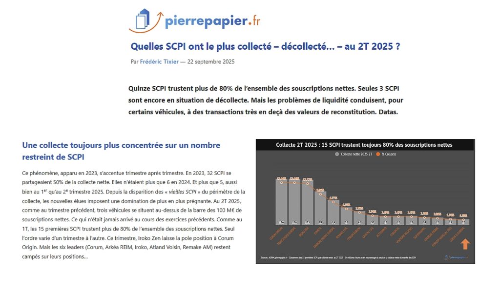Le marché des SCPI poursuit son redressement : 1,1 Md€ collectés au 2ᵉ trimestre 2025 (ASPIM).