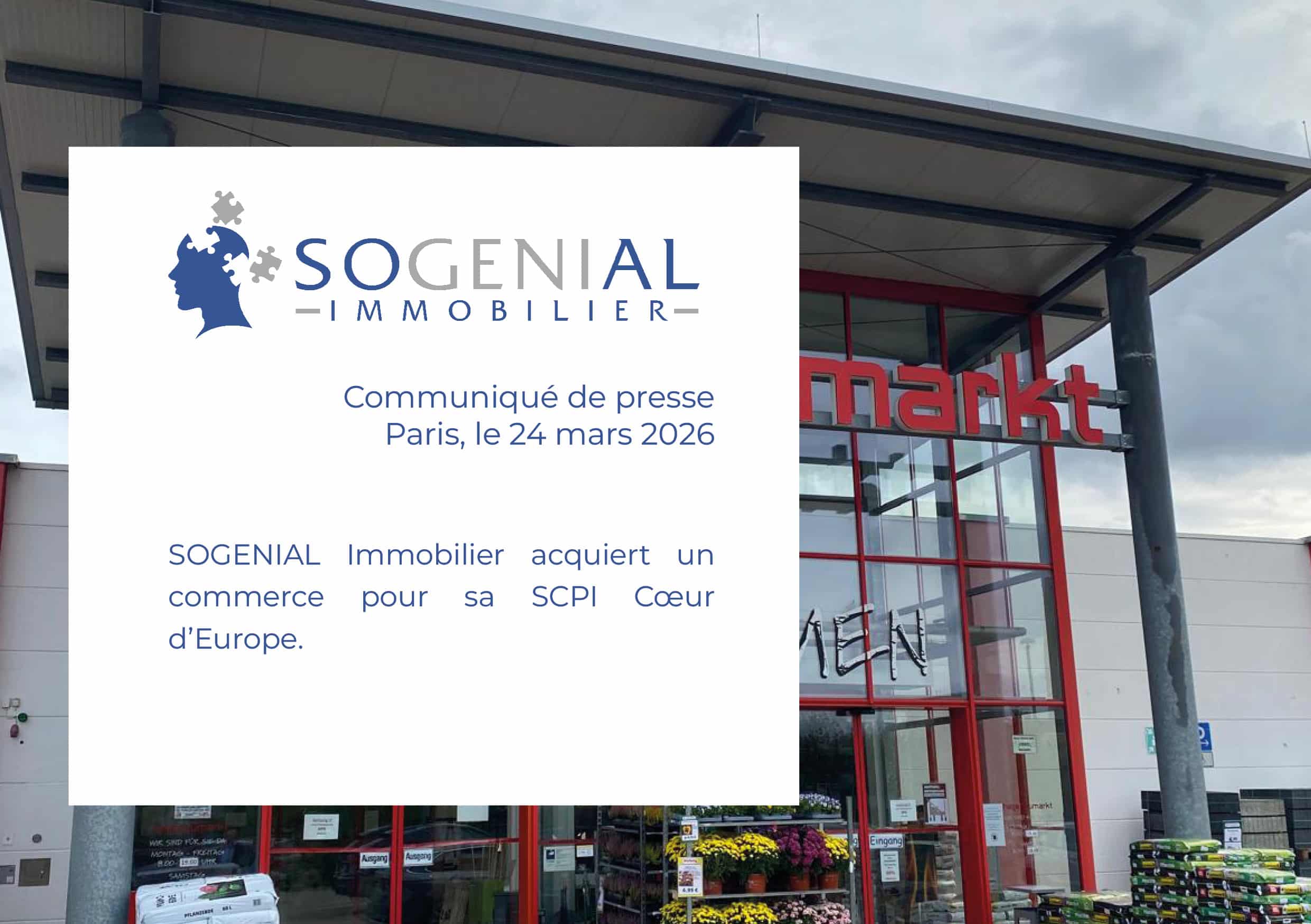 SOGENIAL Immobilier acquiert un commerce pour la SCPI Cœur d’Europe